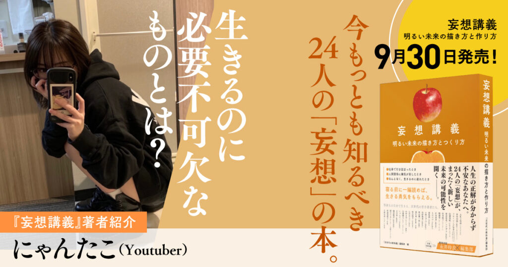 「本題ですね。私、自身のYoutubeだったり、著書だったりでよく 愛とは想像力だ という話をしてるんですよ。実際そう思っていて。例えば、今私が住んでいるマンションの隣の部屋には、長く続いた雨がやんで空が白んできた時間に、最愛の娘におはようのキスを贈って会社に向かう若いパパがいるとか、そんなパパを、眠たい目をこすりながら玄関で見送るママがいるとか、凍てつく寒さの夜に、大きな橋の下で凍えるホームレスの男性に、自分が首に巻いていたバーバリーのマフラーをかけて去る老婆がいるとか、世界中で飛び交う愛してるよって言葉の数だとか、街を照らしたまま消えない灯りの意味だとか、冷蔵庫にふたつあるプリンだとか、あの人が好きだと言ったから目に付く道端のパンジーだとか、定期的に実家から送られてくる米とカップ麺だとか、全部。この世界にある全て、起きること全て、想像の中に、愛って生まれるよなあって思うんです。でも、妄想って、ちょっと違うじゃないですか。言葉の中に、ネガティブな要素がある。文字にしても、妄り(みだり)な想像、って書いて、妄想。なんか、ちょっとだめなこと、エロティックなこと、そんな響きがあるじゃないですか。